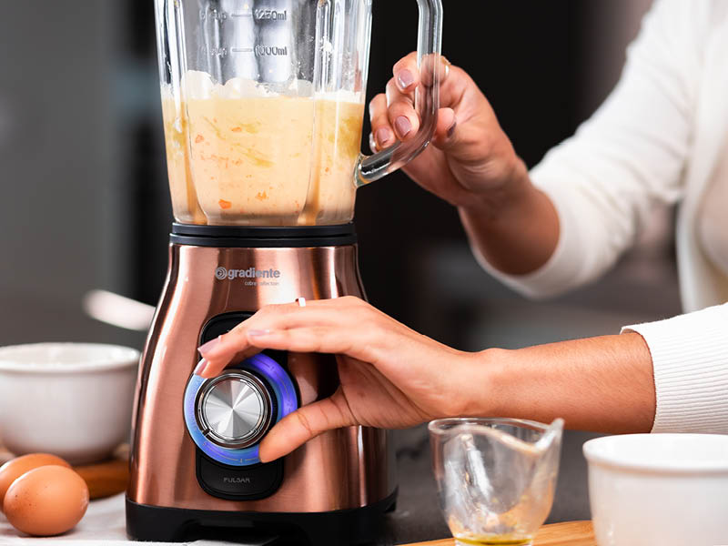 A Linha Cobre Collection da Gradiente traz toda a modernidade, design e potência no Liquidificador Revolution Glass com impressionantes 1000W de potência e uma capacidade de trituração como você nunca viu!