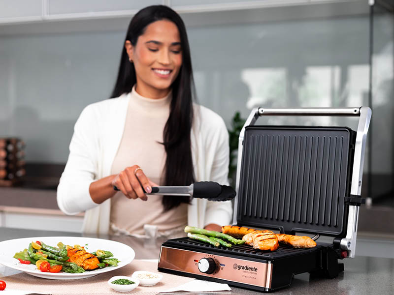 Para te ajudar no preparo de refeições mais saudáveis, sequinhas e deliciosas sem perder o sabor te apresentamos a Grill Press Inox Gradiente.